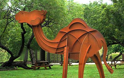 剪影雕塑,看的就是個輪廓!把你想做的東西(人、動物、樹啊啥的),簡化成影子形狀。材料選擇多:不銹鋼、耐候鋼(喜歡生銹那種質感)、玻璃鋼、鍍鋅板、鐵板都成。最后還得靠噴漆,給它們打扮上顏色。
